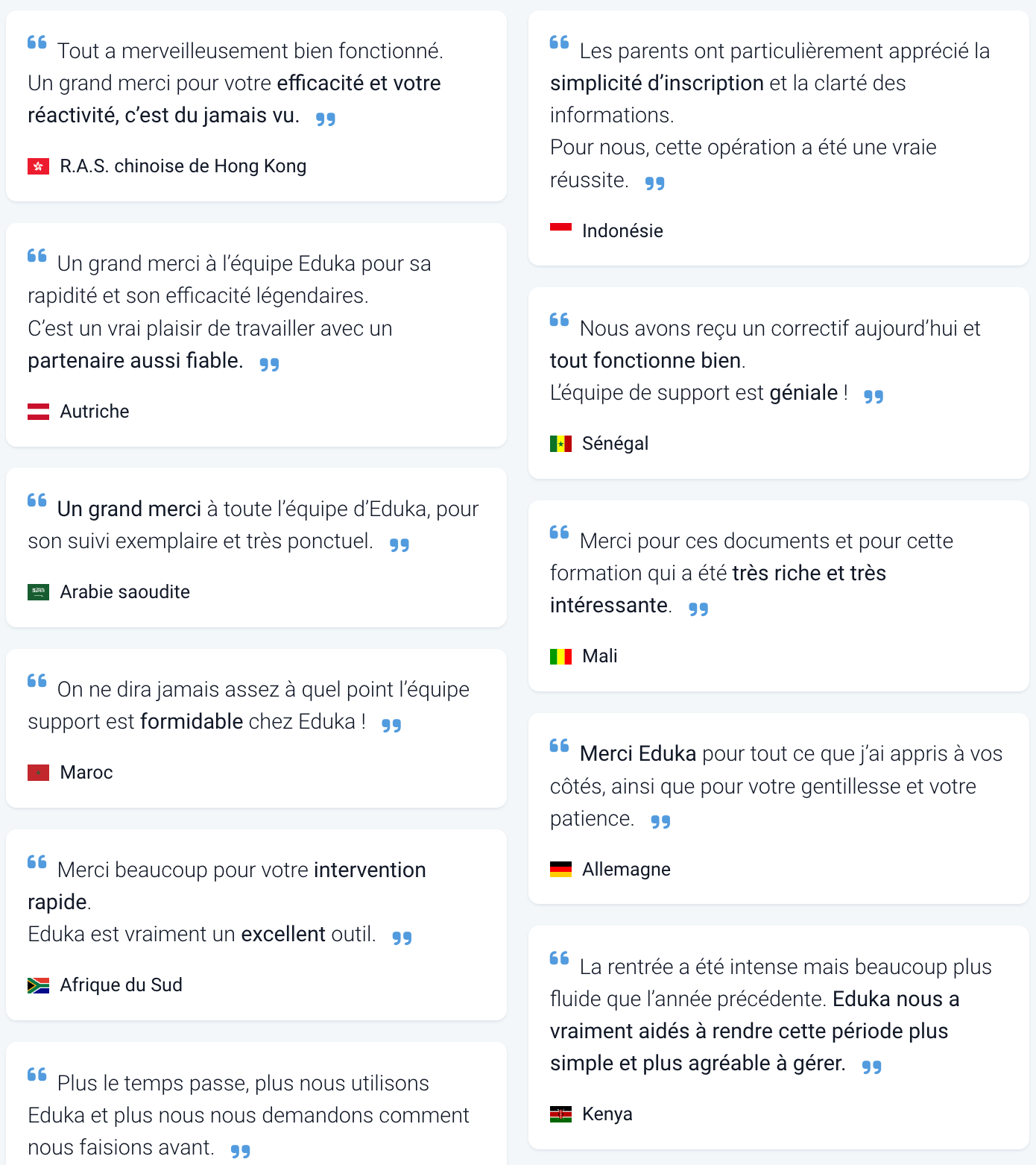 Vous vous demandez ce que nos clients disent du support Eduka ? Vous tombez à pic : nous avons désormais une page répertoriant les retours d’établissements à travers le monde.