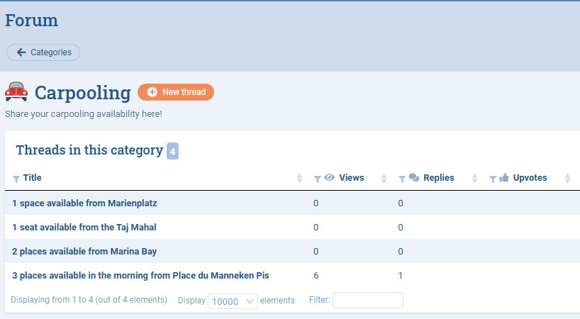 - Creation of categories to organize discussion threads